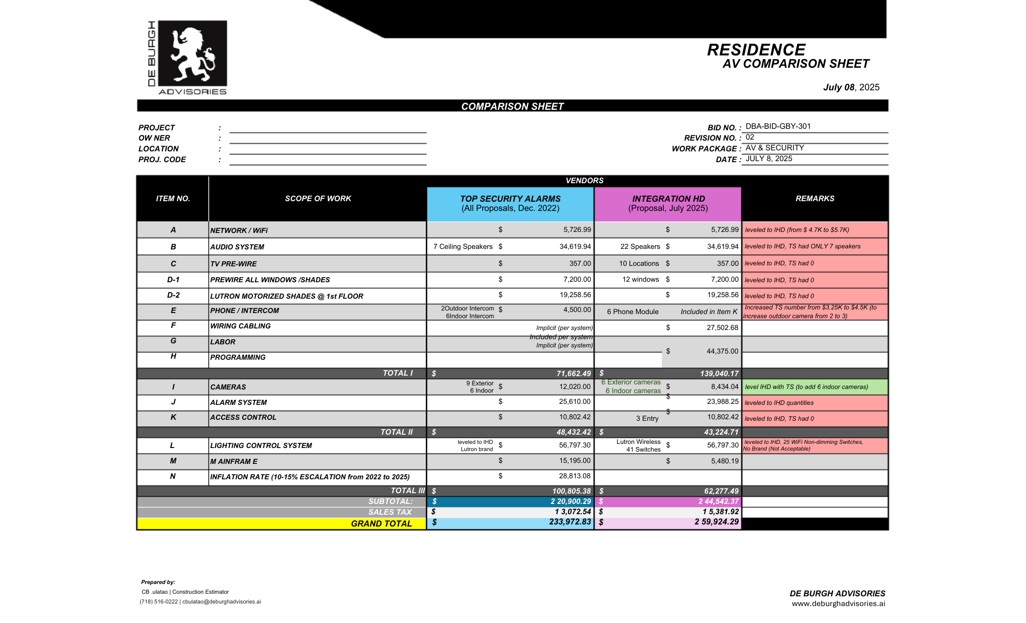 Proposals are aligned and analyzed, protecting design intent while strengthening cost control and leverage.