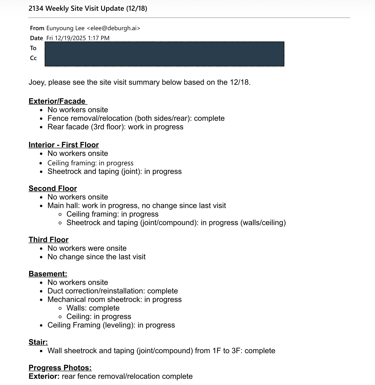 Budgets, draw reviews, and reporting are organized with precision, giving owners visibility and confidence.